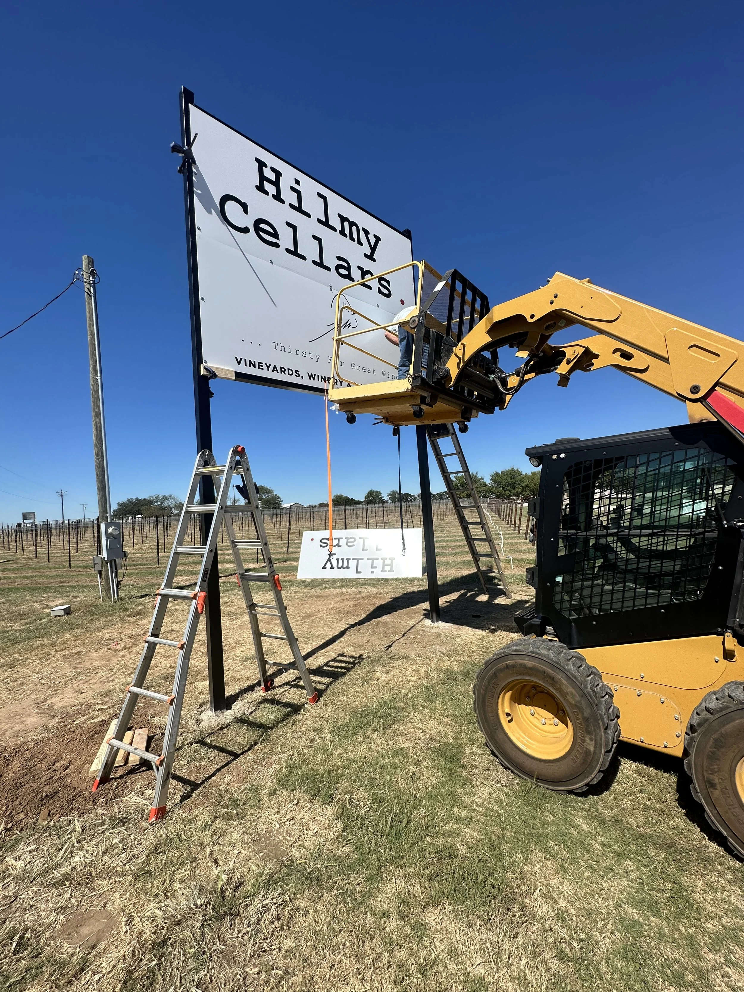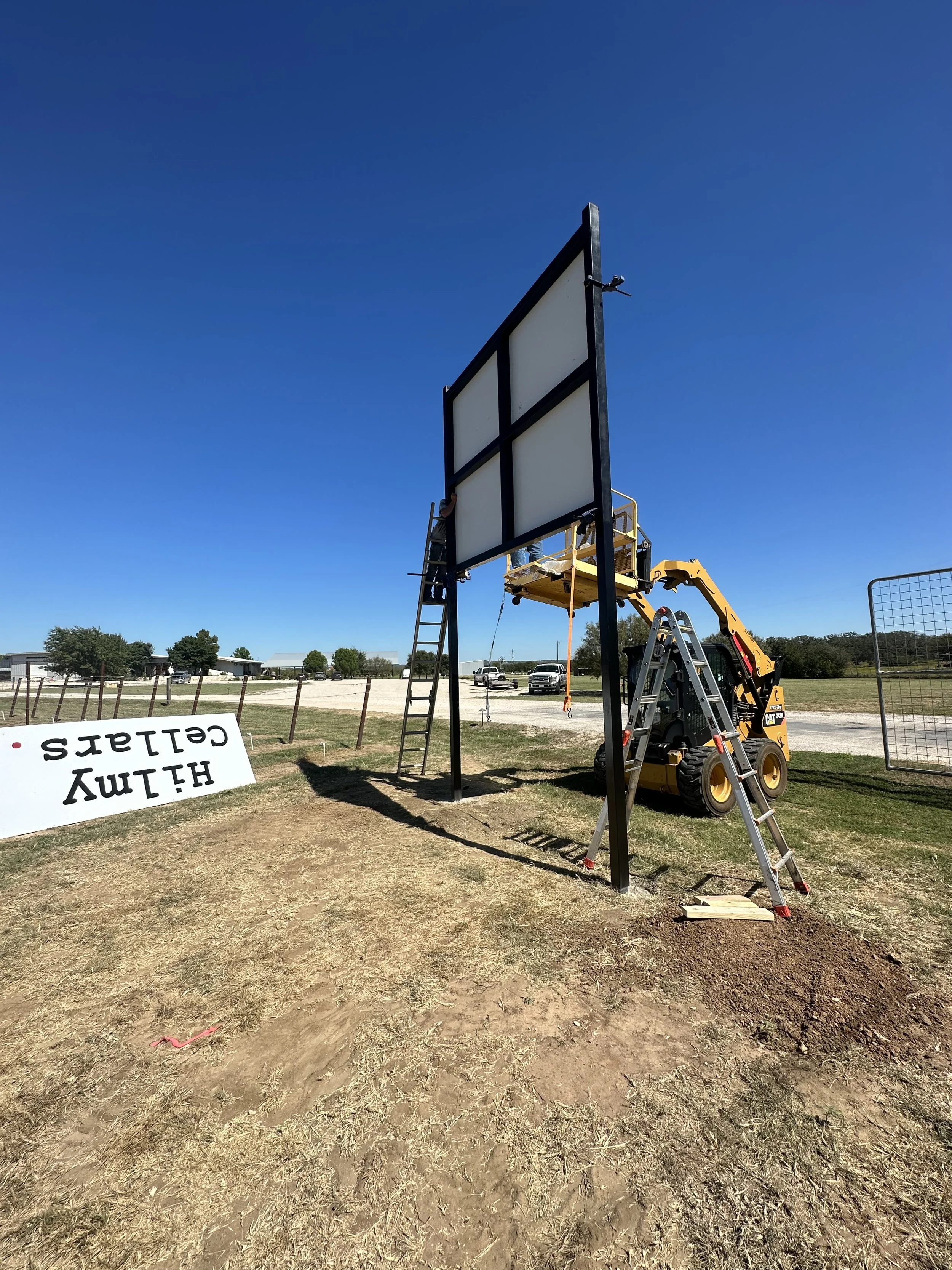 For this project, I was commissioned to design, fabricate, and install a large custom business sign featuring two 10' x 8' printed sections mounted on a durable 18-foot-tall metal frame. I constructed the frame using 4" x 4" square metal tubing, welded the sections together, and utilized a Holt Cat skid steer to drill foundation holes for secure installation. The project involved coordinating with an engraving shop for the printed panels and completing all on-site assembly and installation. The final result is a bold, eye-catching sign that perfectly aligns with the client’s vision.